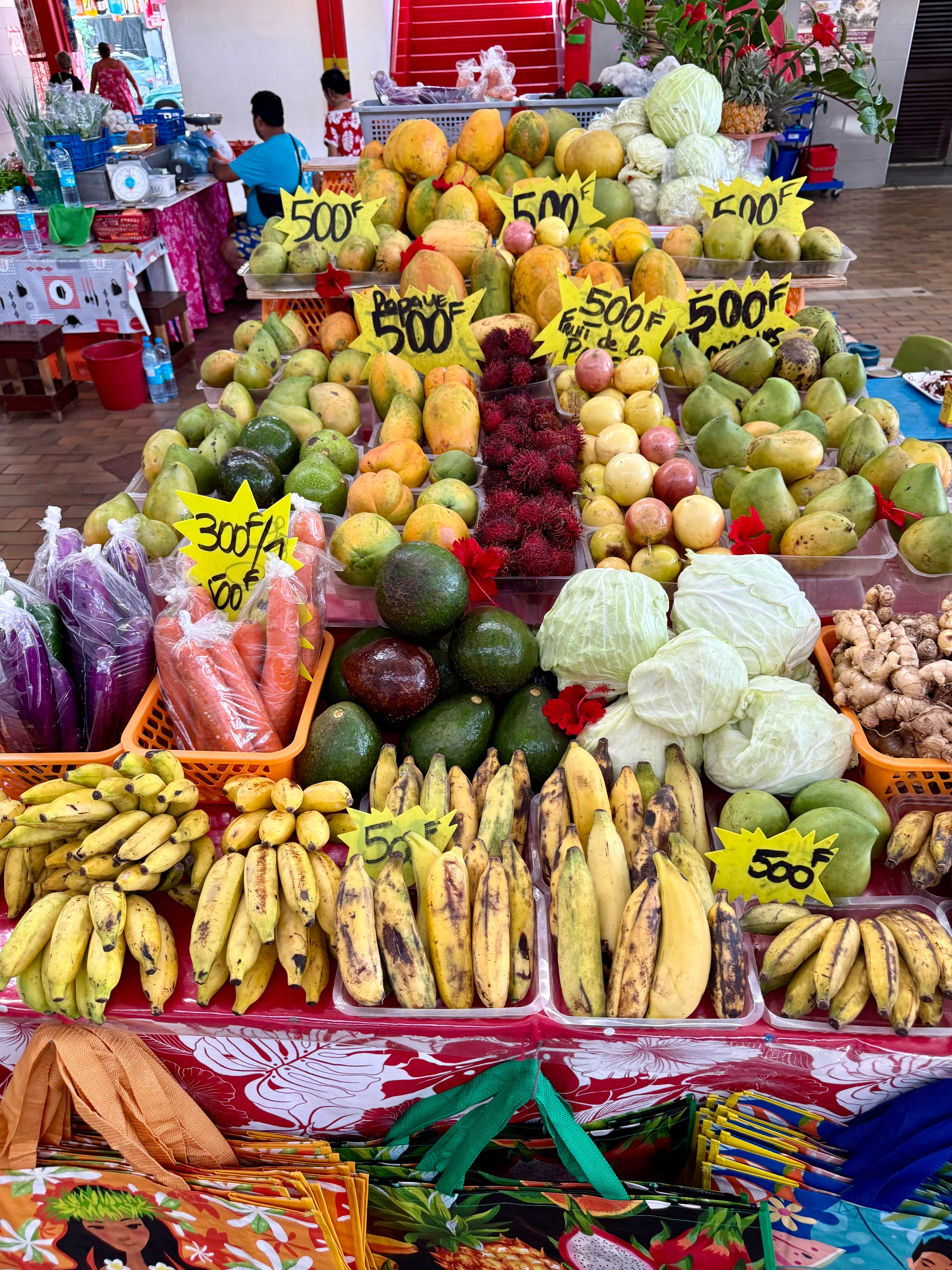 I walked through the local market where fruit was stacked high, labeled in Pacific francs, purchased by people who weren’t on vacation.