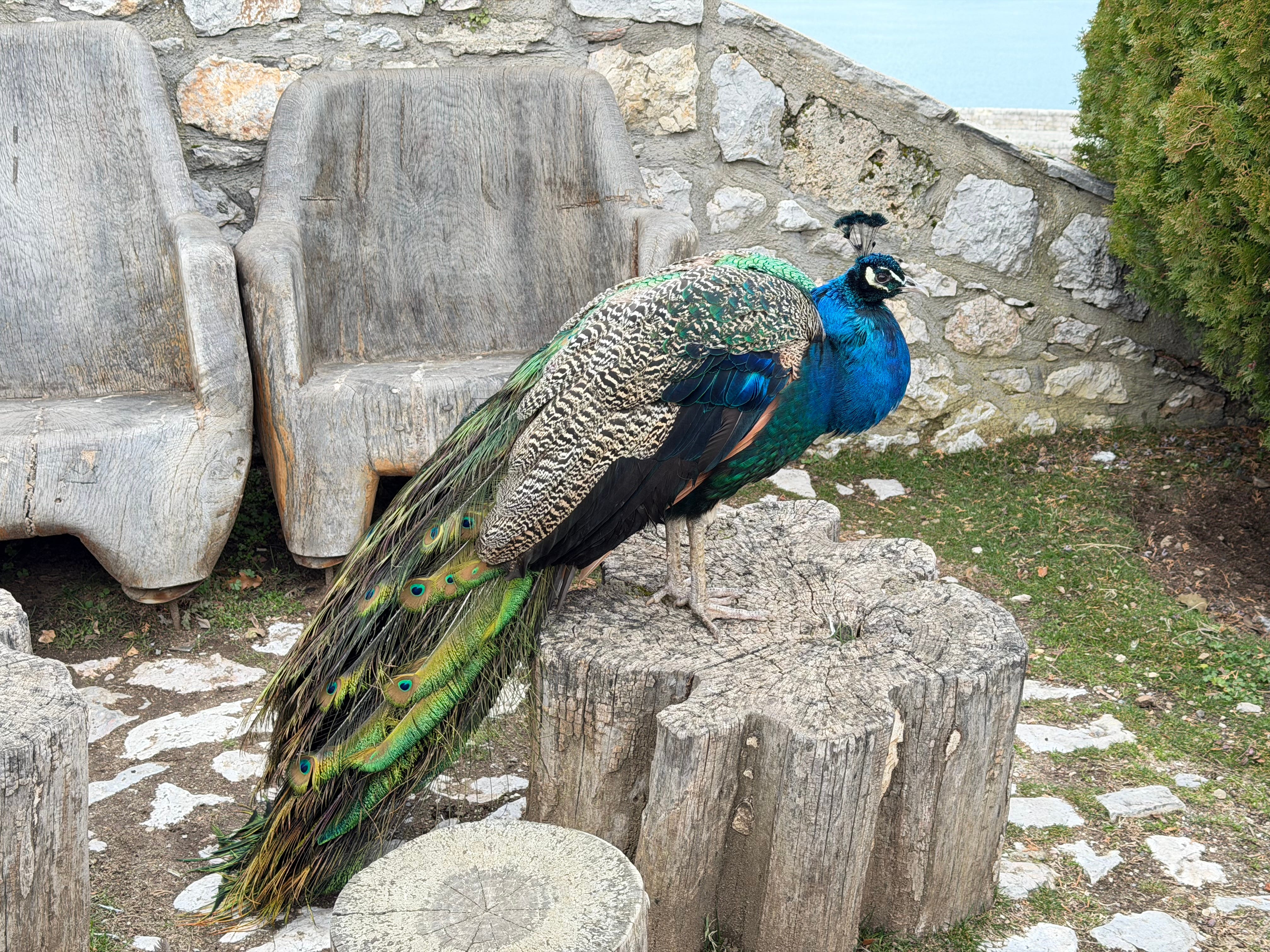 The peacocks live here. They scream. They pose. They do not care about your schedule.